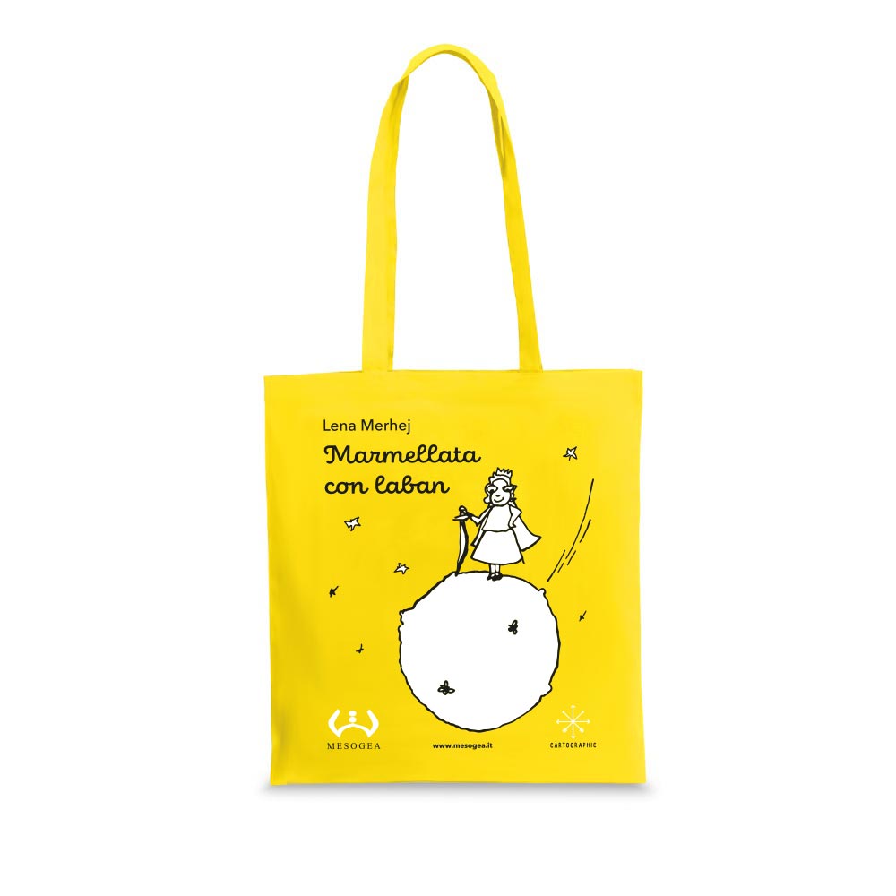 Borsa in cotone con stampa serigrafica a due colori con la dolce e irriverente mamma-principessa, protagonista della graphic novel Marmellata con laban dell’autrice libanese Lena Merhej.